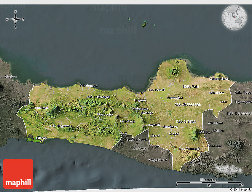 Satellite map shows the Earth's surface as it really looks like. The above map is based on satellite images taken on July 2004. This satellite map of Central Java is meant for illustration purposes only. For more detailed maps based on newer satellite and aerial images switch to a detailed map view.