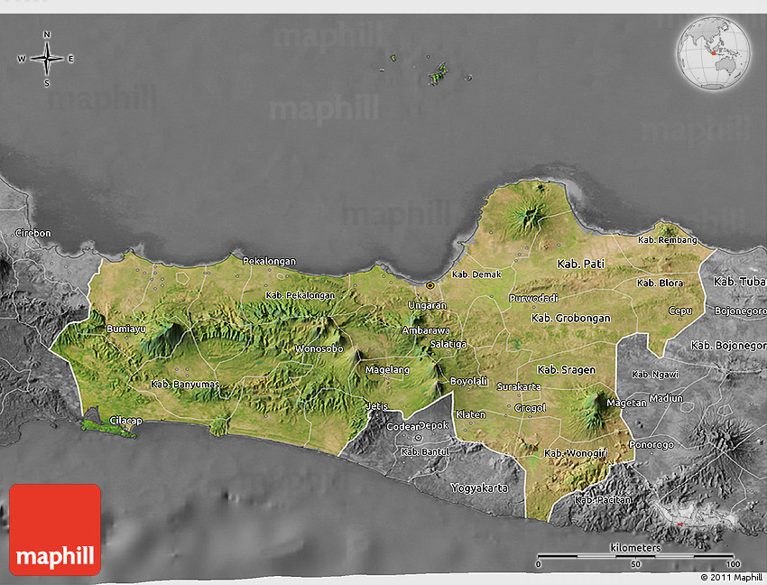 Satellite map shows the Earth's surface as it really looks like. The above map is based on satellite images taken on July 2004. This satellite map of Central Java is meant for illustration purposes only. For more detailed maps based on newer satellite and aerial images switch to a detailed map view.