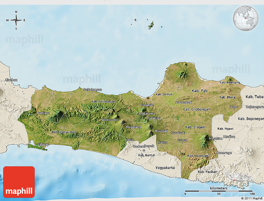 Satellite map shows the Earth's surface as it really looks like. The above map is based on satellite images taken on July 2004. This satellite map of Central Java is meant for illustration purposes only. For more detailed maps based on newer satellite and aerial images switch to a detailed map view.
