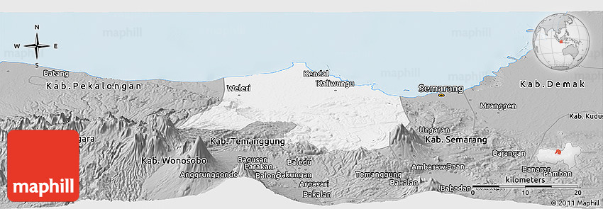 Embed the above gray panoramic map of Kab. Batang into your website. Enrich your blog with quality map graphics. Make the web a more beautiful place.