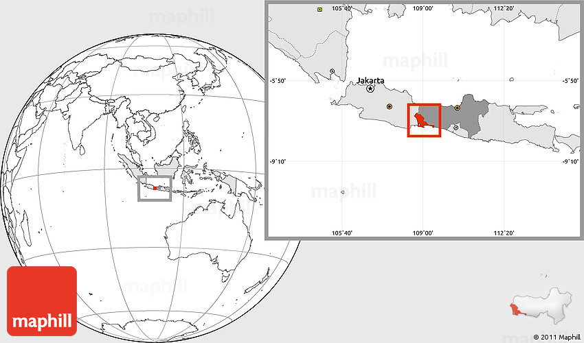 Maphill is a collection of map images. This image combines a blank map with the globe centered on Kab. Cilacap. Use the buttons under the image to switch to different map types.