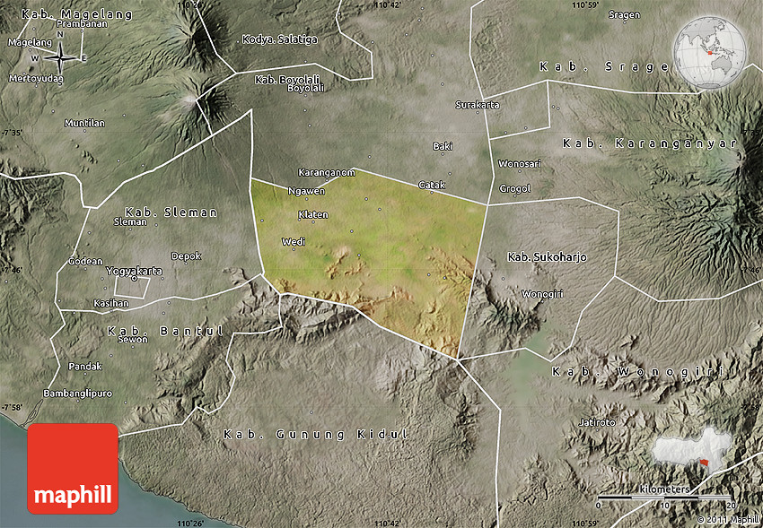 Maphill is a collection of map images. This satellite map of Kab. Klaten is one of them. Click on the Detailed button under the image to switch to a more detailed map.