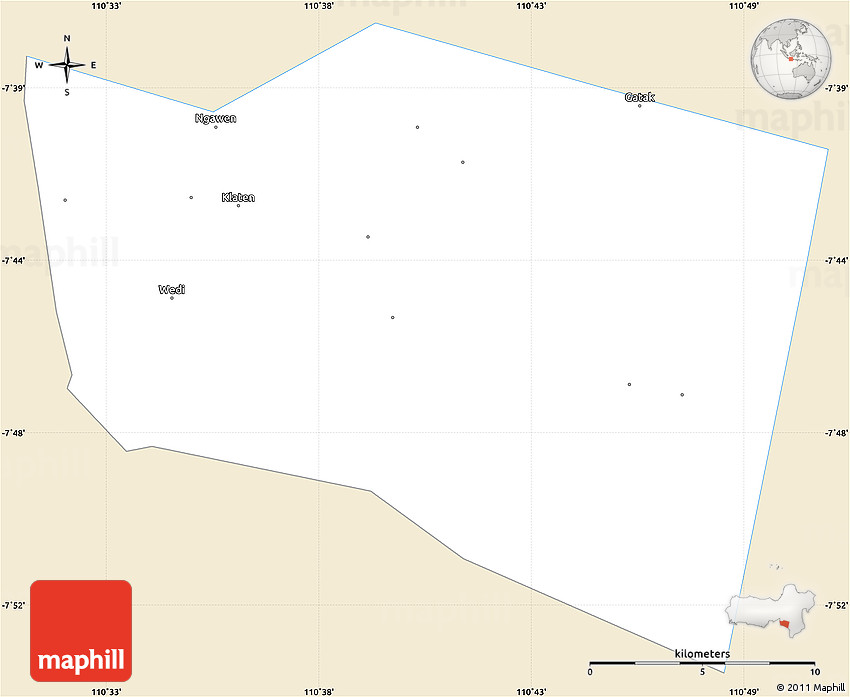 Maphill is a collection of map graphics. This simple outline map of Kab. Klaten is one of these images. Use the buttons under the image to switch to more comprehensive and detailed map types.