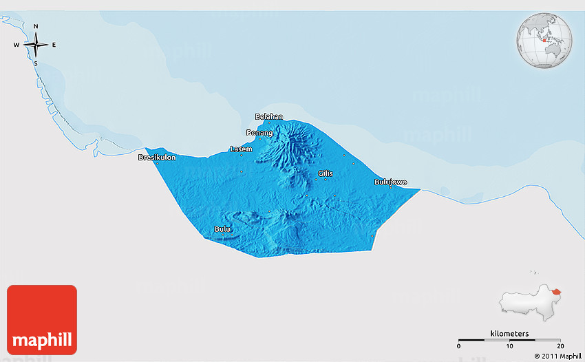 Use the buttons for Facebook, Twitter or Google+ to share this Kab. Rembang, Central Java, Indonesia map. Maphill is the largest web map gallery. However, the number of maps is certainly not the only reason to visit Maphill.
