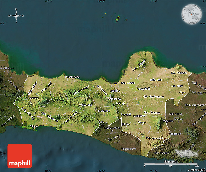Maphill is a collection of map images. This satellite map of Central Java is one of them. Click on the Detailed button under the image to switch to a more detailed map.