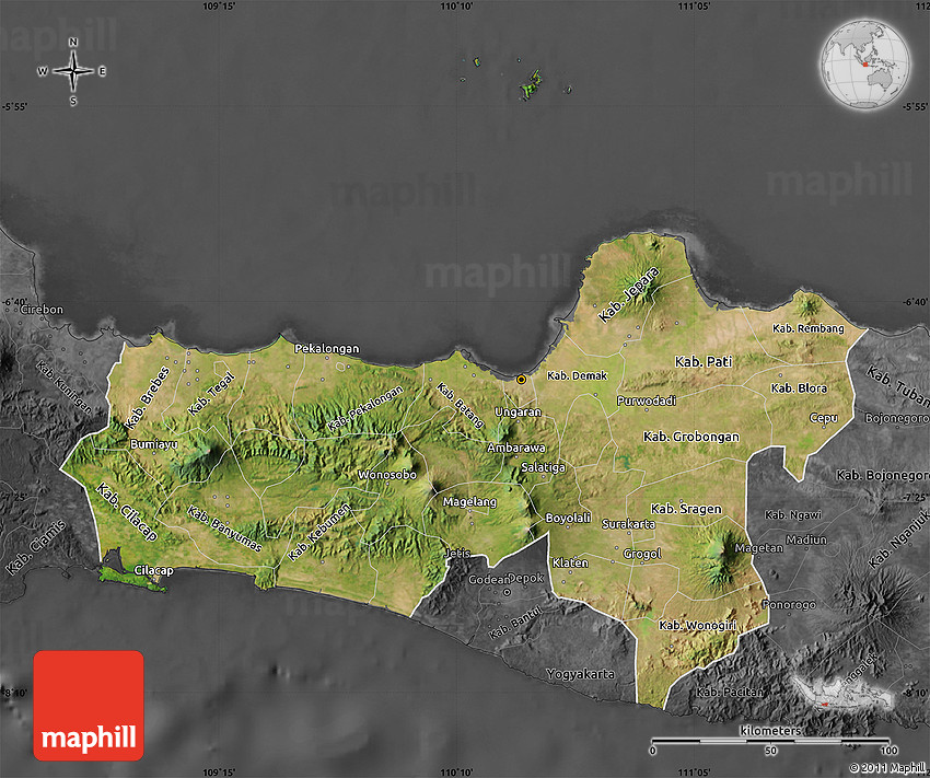 Maphill is a collection of map images. This satellite map of Central Java is one of them. Click on the Detailed button under the image to switch to a more detailed map.