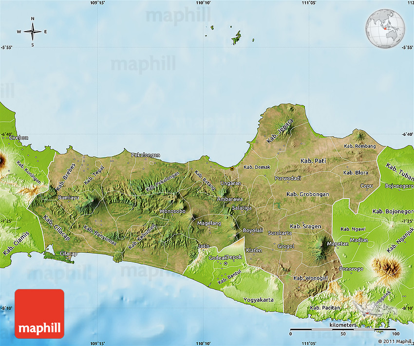 Maphill is a collection of map images. This satellite map of Central Java is one of them. Click on the Detailed button under the image to switch to a more detailed map.