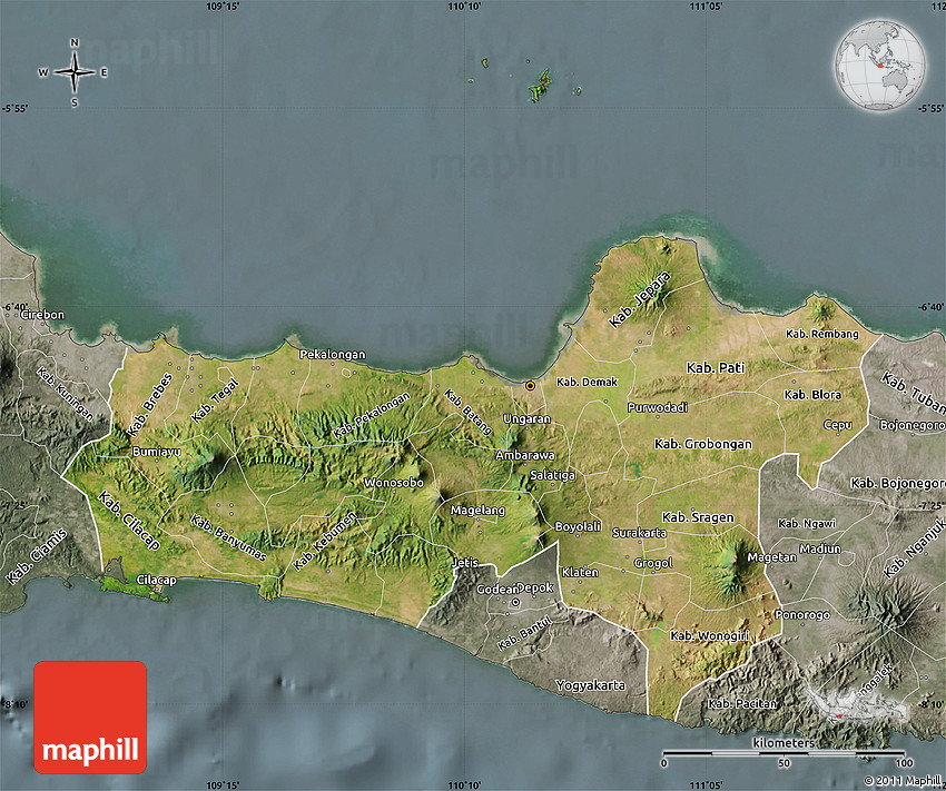 Satellite map shows the Earth's surface as it really looks like. The above map is based on satellite images taken on July 2004. This satellite map of Central Java is meant for illustration purposes only. For more detailed maps based on newer satellite and aerial images switch to a detailed map view.