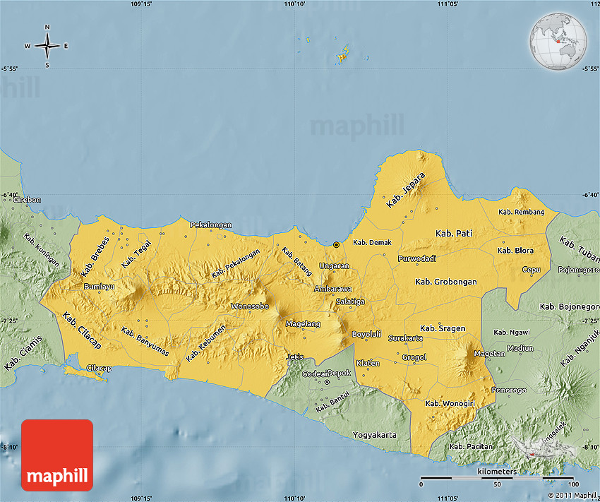 Maphill is a collection of map images. This savanna style map of Central Java is one of them. Click on the Detailed button under the image to switch to a more detailed map.
