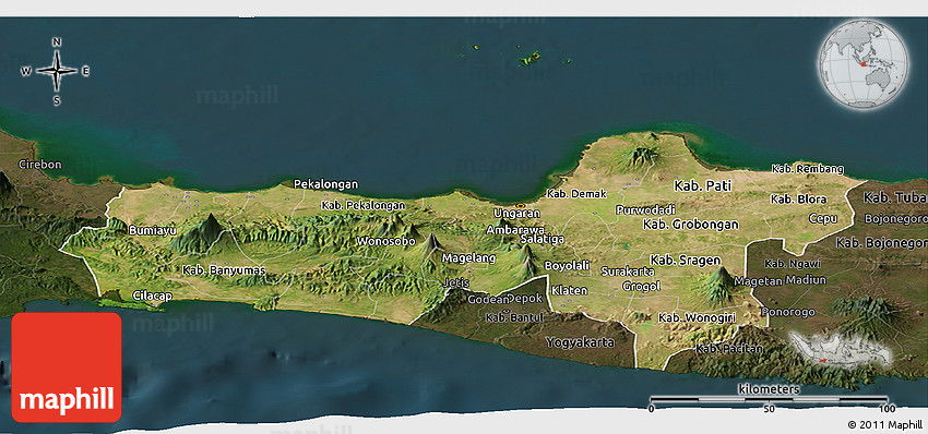 Satellite map shows the Earth's surface as it really looks like. The above map is based on satellite images taken on July 2004. This satellite map of Central Java is meant for illustration purposes only. For more detailed maps based on newer satellite and aerial images switch to a detailed map view.