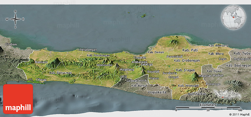 Satellite map shows the Earth's surface as it really looks like. The above map is based on satellite images taken on July 2004. This satellite map of Central Java is meant for illustration purposes only. For more detailed maps based on newer satellite and aerial images switch to a detailed map view.