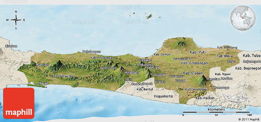 Satellite map shows the Earth's surface as it really looks like. The above map is based on satellite images taken on July 2004. This satellite map of Central Java is meant for illustration purposes only. For more detailed maps based on newer satellite and aerial images switch to a detailed map view.