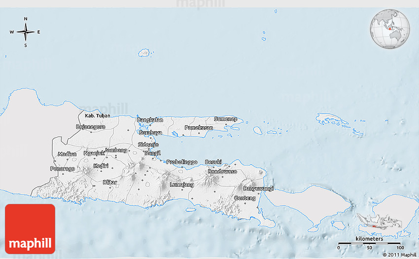 Embed the above silver style 3D map of East Java into your website. Enrich your blog with quality map graphics. Make the web a more beautiful place.