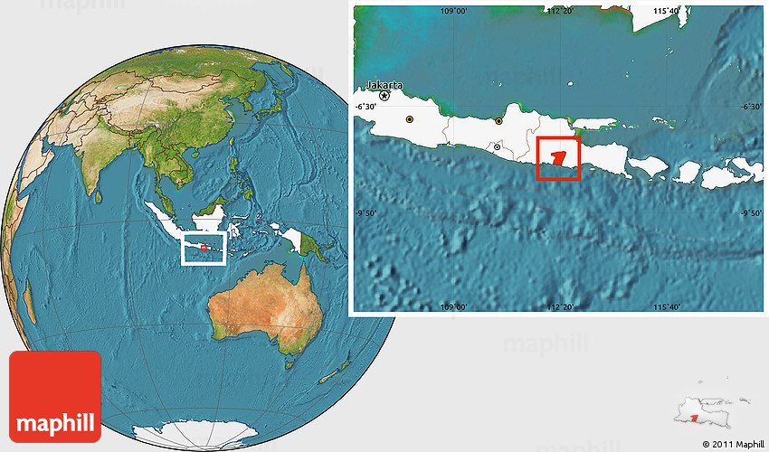 Maphill is a collection of map images. This image combines a satellite map with the globe centered on Kab. Blitar. Use the buttons under the image to switch to different map types.