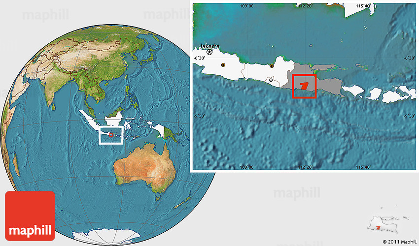 Maphill is a collection of map images. This image combines a satellite map with the globe centered on Kab. Blitar. Use the buttons under the image to switch to different map types.