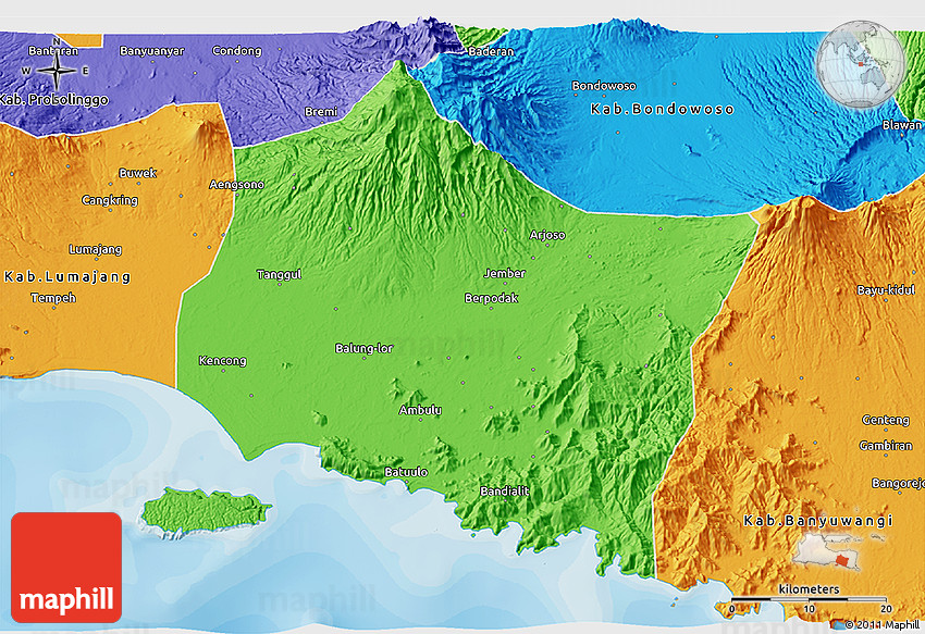 Each map style has its advantages. No map type is the best. The best is that Maphill lets you look at Kab. Jember from many different perspectives.