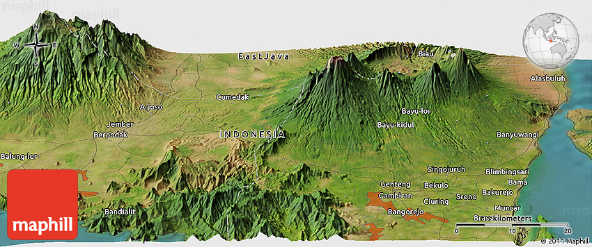Sure, this satellite panoramic map is nice. But there is good chance you will like other map styles even more. Select another style in the above table. See Mumbulsari and East Java from a different view.
