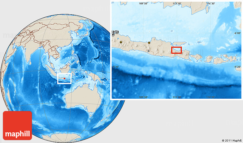 Sure, this shaded relief location map is nice. But there is good chance you will like other map styles even more. Select another style in the above table. See Kraton and East Java from a different view.