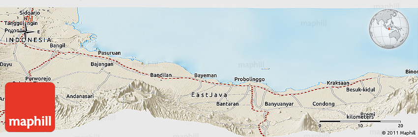 Sure, this shaded relief panoramic map is nice. But there is good chance you will like other map styles even more. Select another style in the above table. See Kraton and East Java from a different view.