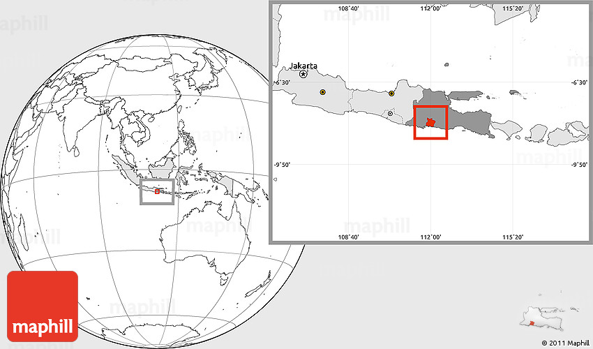 Maphill is a collection of map images. This image combines a blank map with the globe centered on Kab. Tulungagung. Use the buttons under the image to switch to different map types.