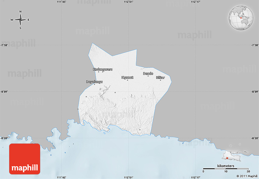 Embed the above gray map of Kab. Tulungagung into your website. Enrich your blog with quality map graphics. Make the web a more beautiful place.