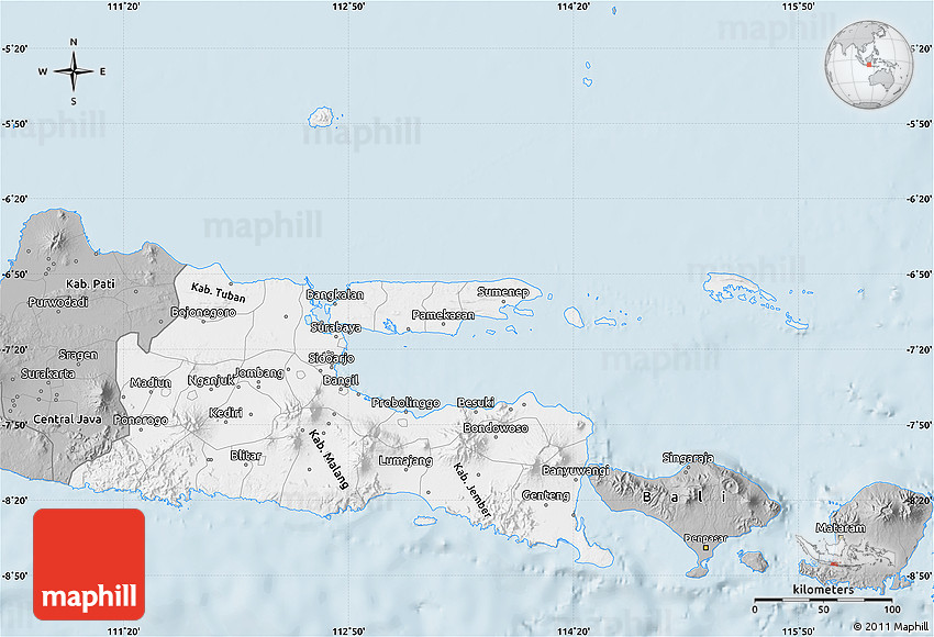 Maphill is a collection of map images. This gray map of East Java is one of them. Click on the Detailed button under the image to switch to a more detailed map.