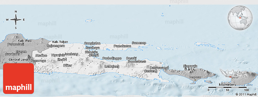 Embed the above gray panoramic map of East Java into your website. Enrich your blog with quality map graphics. Make the web a more beautiful place.