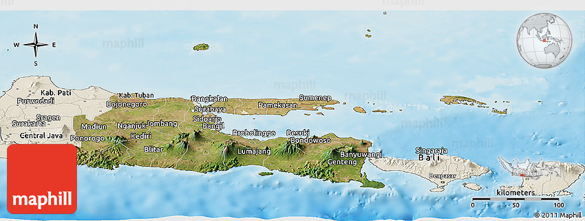 Use the buttons for Facebook, Twitter or Google+ to share this East Java, Indonesia map. Maphill is the largest map gallery on the web. But the number of maps is certainly not the only reason to visit Maphill.
