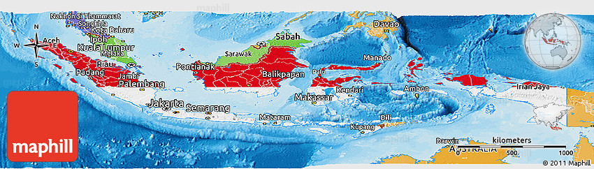 The value of Maphill lies in the possibility to look at the same area from several perspectives. Maphill presents the map of Indonesia in a wide variety of map types and styles.