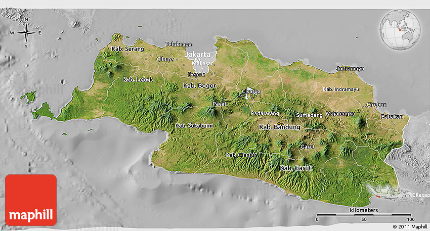 Satellite map shows the Earth's surface as it really looks like. The above map is based on satellite images taken on July 2004. This satellite map of West Java is meant for illustration purposes only. For more detailed maps based on newer satellite and aerial images switch to a detailed map view.