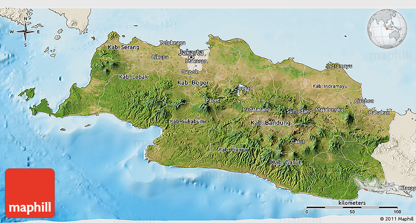 Satellite map shows the Earth's surface as it really looks like. The above map is based on satellite images taken on July 2004. This satellite map of West Java is meant for illustration purposes only. For more detailed maps based on newer satellite and aerial images switch to a detailed map view.