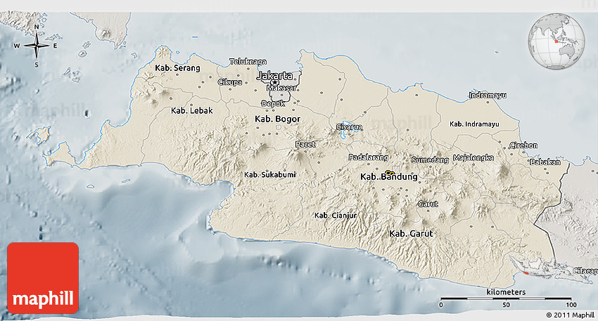 Embed the above shaded relief 3D map of West Java into your website. Enrich your blog with quality map graphics. Make the web a more beautiful place.