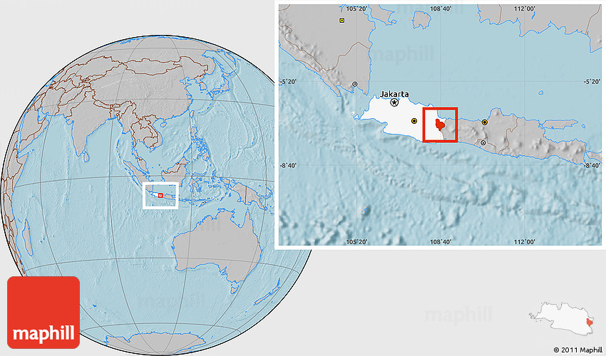 Maphill is a collection of map images. This image combines a gray map with the globe centered on Kab. Kuningan. Use the buttons under the image to switch to different map types.