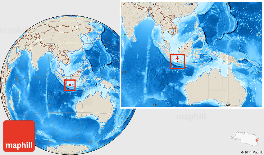 Maphill is a collection of map images. This image combines a shaded relief map with the globe centered on Kab. Kuningan. Use the buttons under the image to switch to different map types.