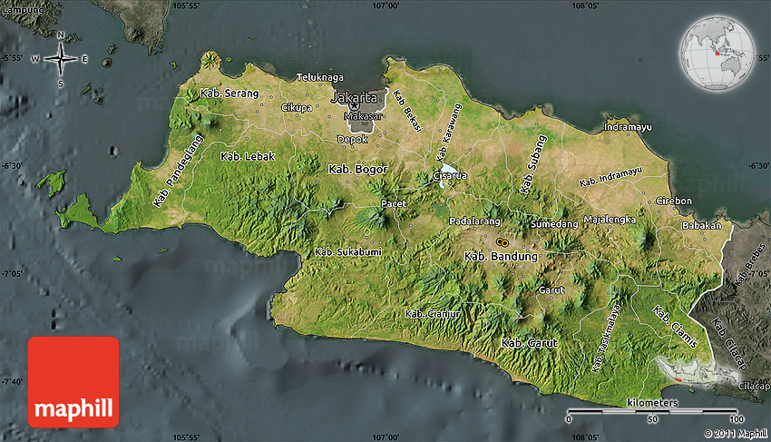 Maphill is a collection of map images. This satellite map of West Java is one of them. Click on the Detailed button under the image to switch to a more detailed map.