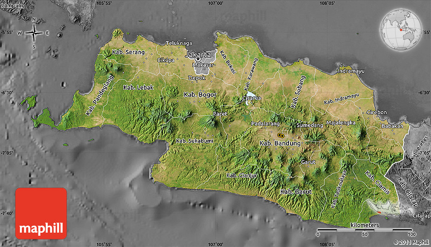 Maphill is a collection of map images. This satellite map of West Java is one of them. Click on the Detailed button under the image to switch to a more detailed map.