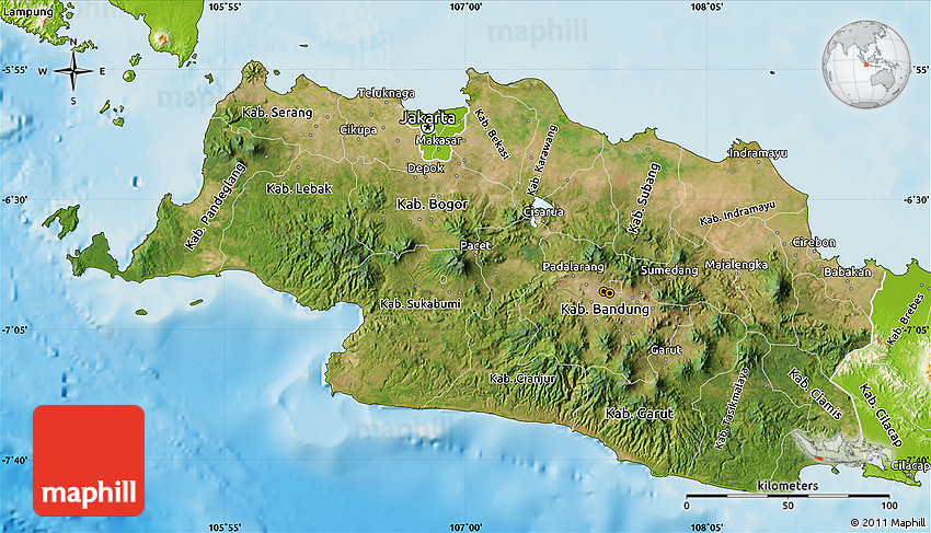 Maphill is a collection of map images. This satellite map of West Java is one of them. Click on the Detailed button under the image to switch to a more detailed map.