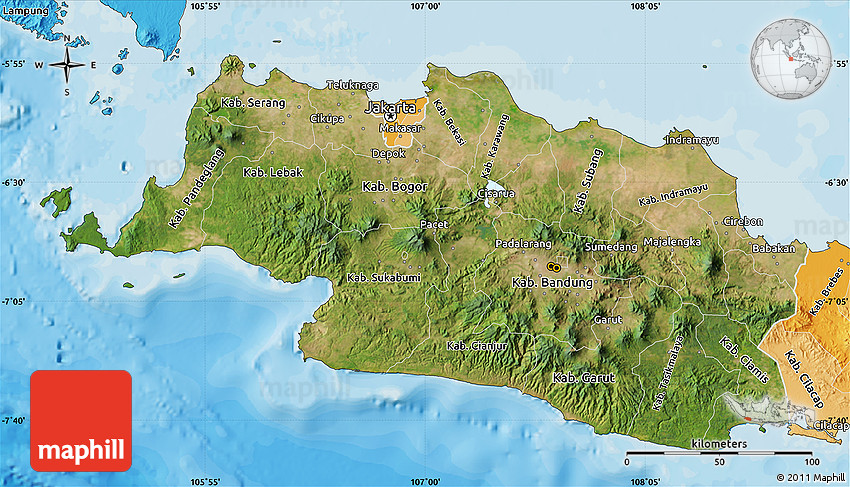 Maphill is a collection of map images. This satellite map of West Java is one of them. Click on the Detailed button under the image to switch to a more detailed map.