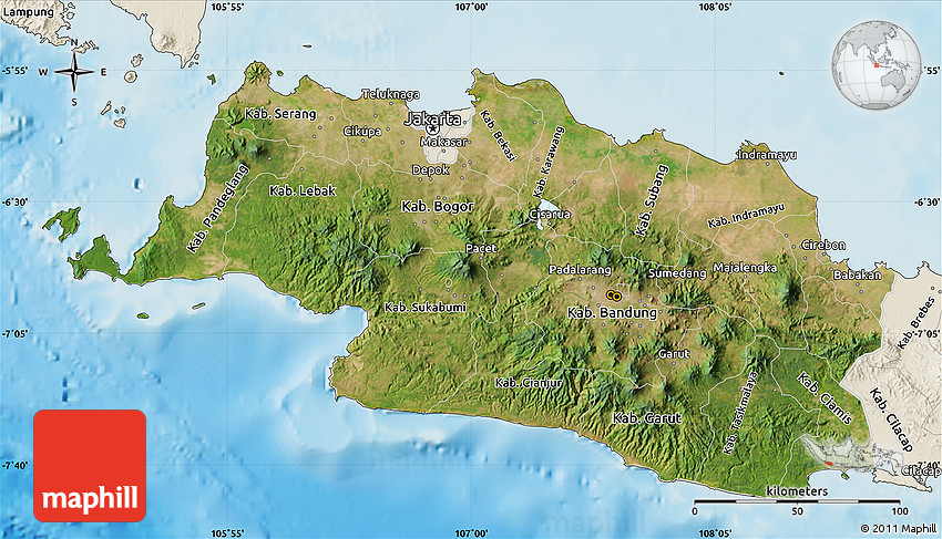 Maphill is a collection of map images. This satellite map of West Java is one of them. Click on the Detailed button under the image to switch to a more detailed map.