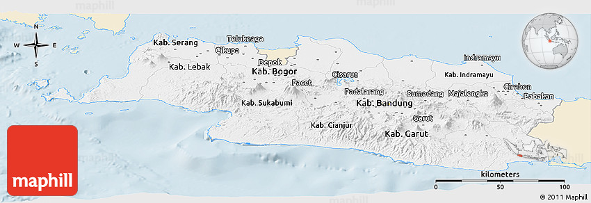 The value of Maphill lies in the possibility to look at the same area from several perspectives. Maphill presents the map of West Java in a wide variety of map types and styles.