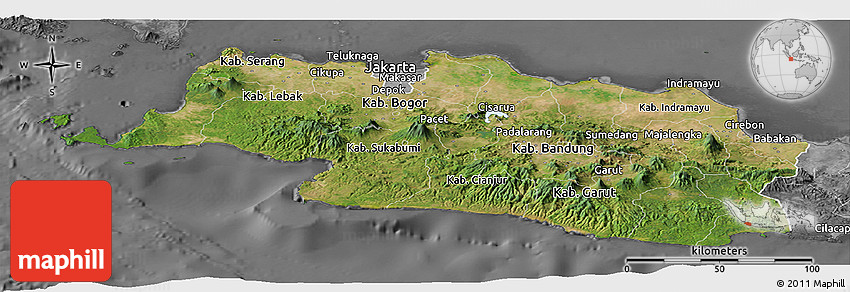 The panoramic satellite map represents one of many map types and styles available. Look at West Java from different perspectives.