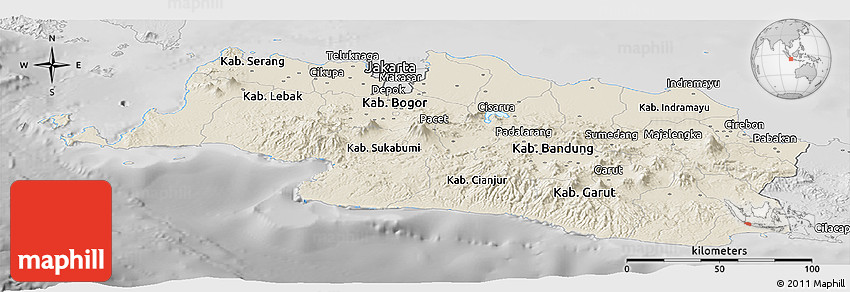 Embed the above shaded relief panoramic map of West Java into your website. Enrich your blog with quality map graphics. Make the web a more beautiful place.