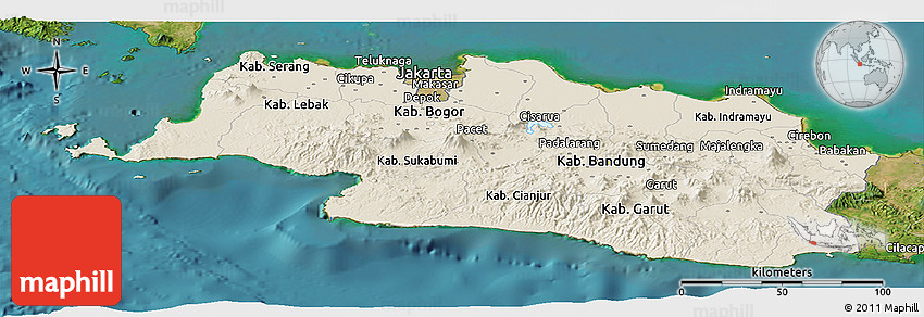 Embed the above shaded relief panoramic map of West Java into your website. Enrich your blog with quality map graphics. Make the web a more beautiful place.