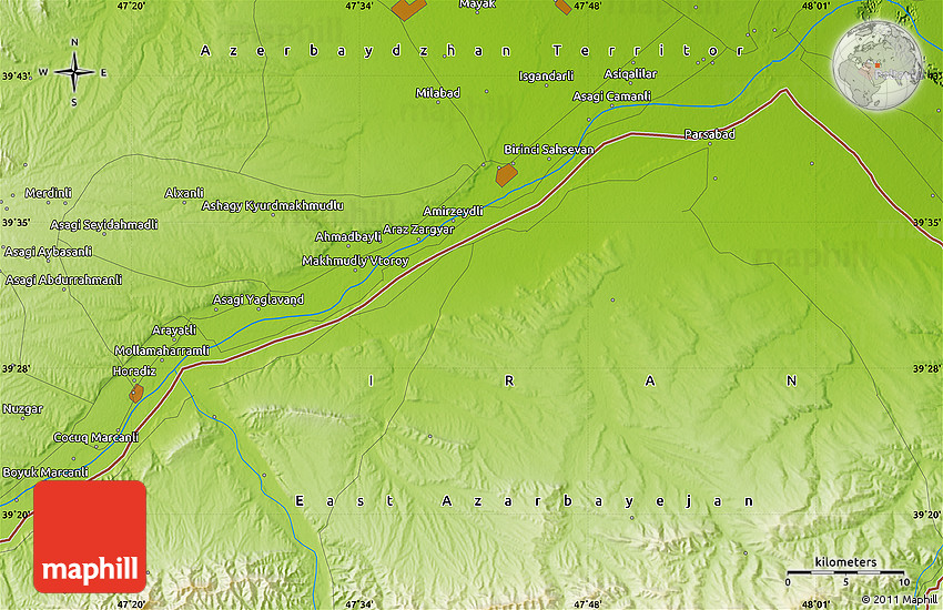 Sure, this physical map is nice. But there is good chance you will like other map styles even more. Select another style in the above table. See Marta`-e Godāylū and East Azarbayejan from a different view.