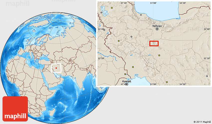 Maphill is a collection of map images. This image combines a shaded relief map with the globe centered on Veshtegān. Use the buttons under the image to switch to different map types.