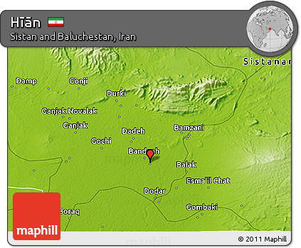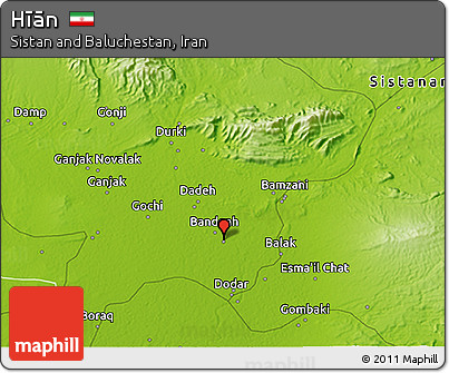 The 3D physical map represents one of many map types and styles available. Look at Hīān, Sistan and Baluchestan, Iran from different perspectives.