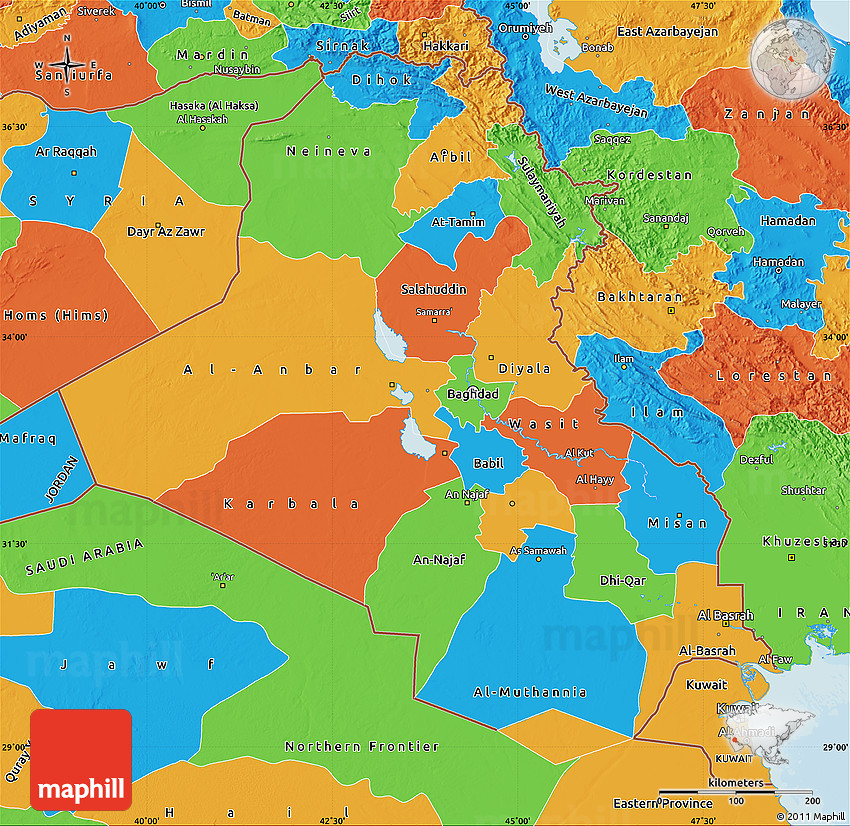 Maphill is a collection of map images. This political map of Iraq is one of them. Click on the Detailed button under the image to switch to a more detailed map.