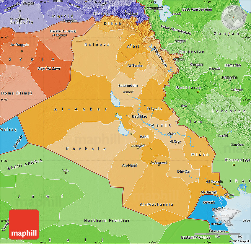 Maphill is a collection of map images. This political shades map of Iraq is one of them. Click on the Detailed button under the image to switch to a more detailed map.