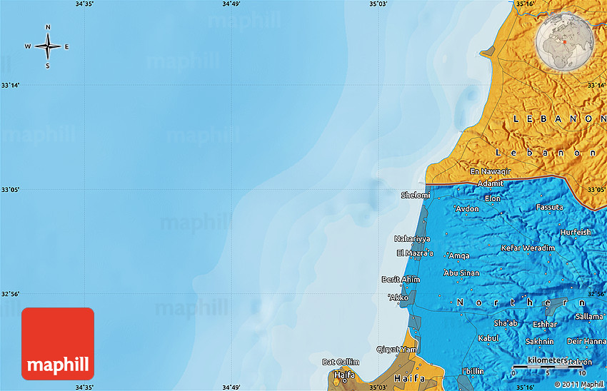 The flat political map represents one of many map types available. Look at Ga`ton, Northern, Israel from different perspectives.