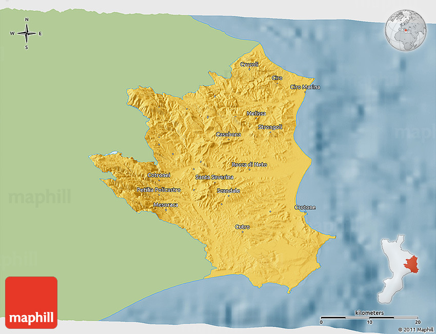 Each map style has its advantages. No map type is the best. The best is that Maphill lets you look at Crotone from many different perspectives.